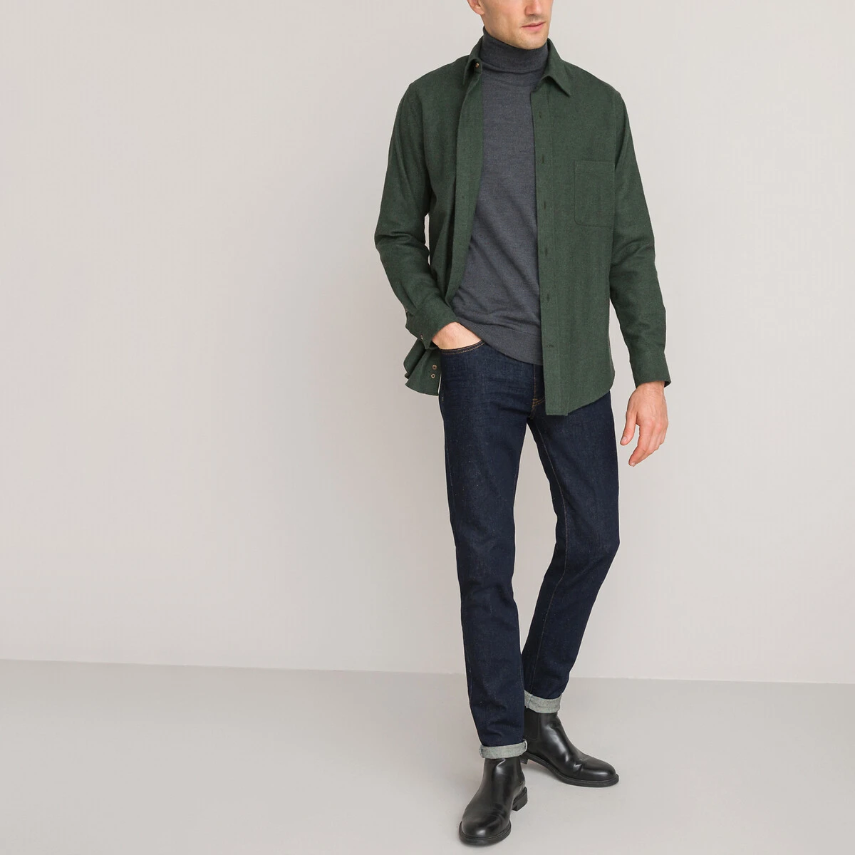 Chemise droite, coton gratté, col français vert kaki LA REDOUTE COLLECTIONS