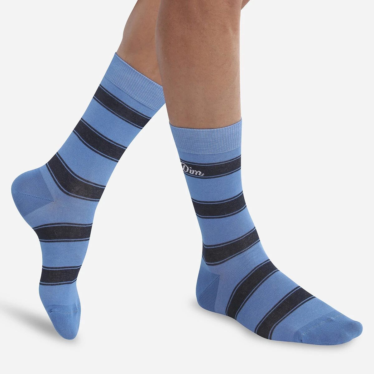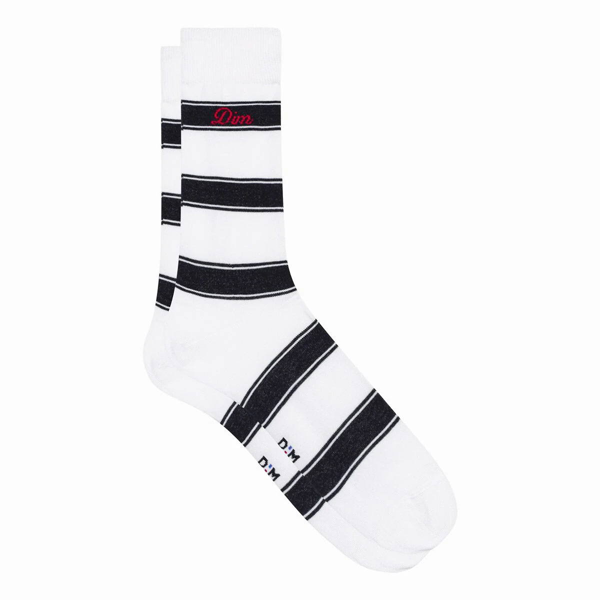 Paire de chaussettes hautes rayées en coton peigné rayé blanc DIM