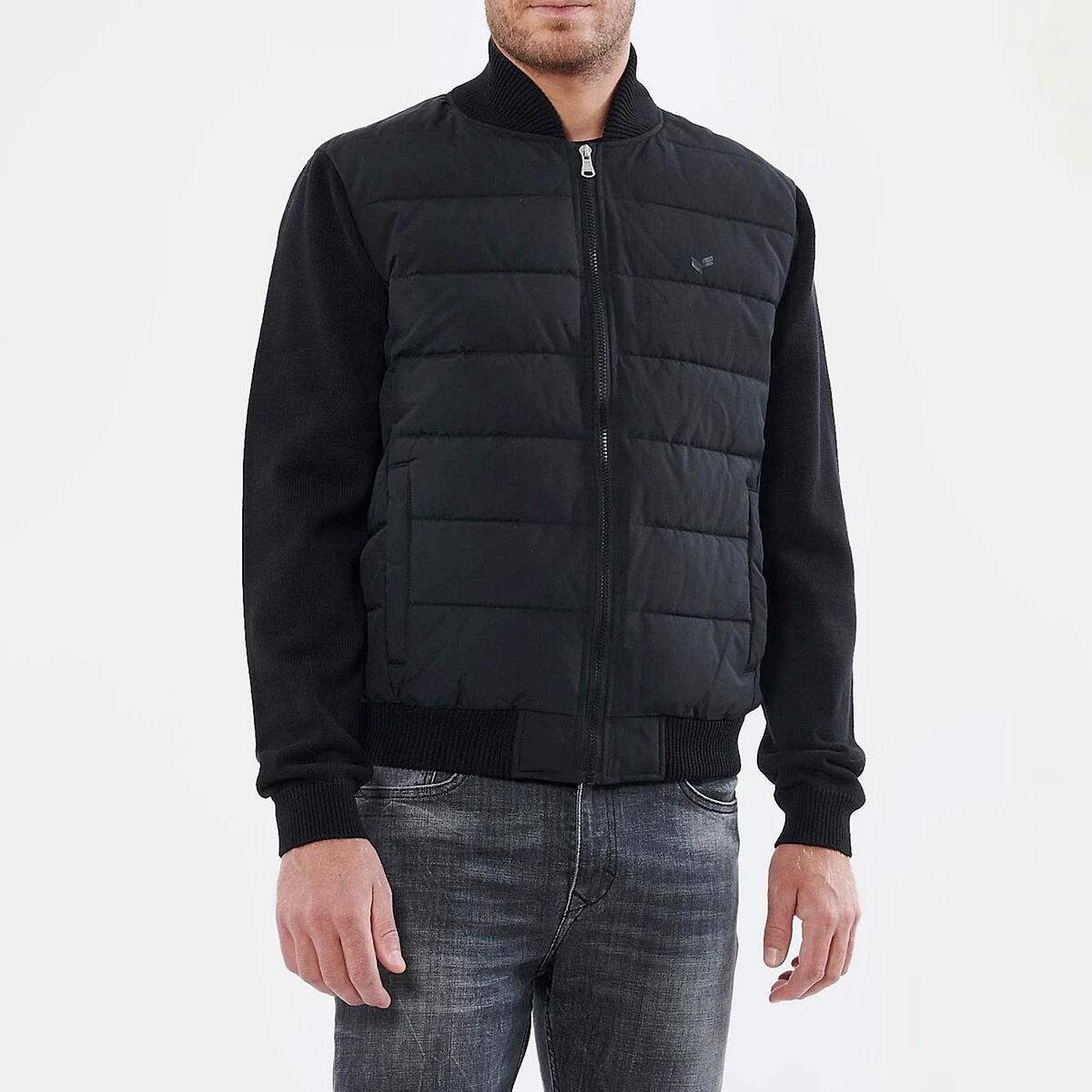 Blouson col montant bi-matière noir KAPORAL