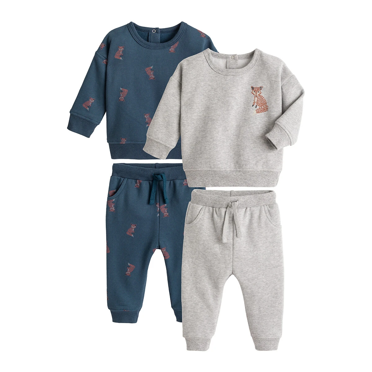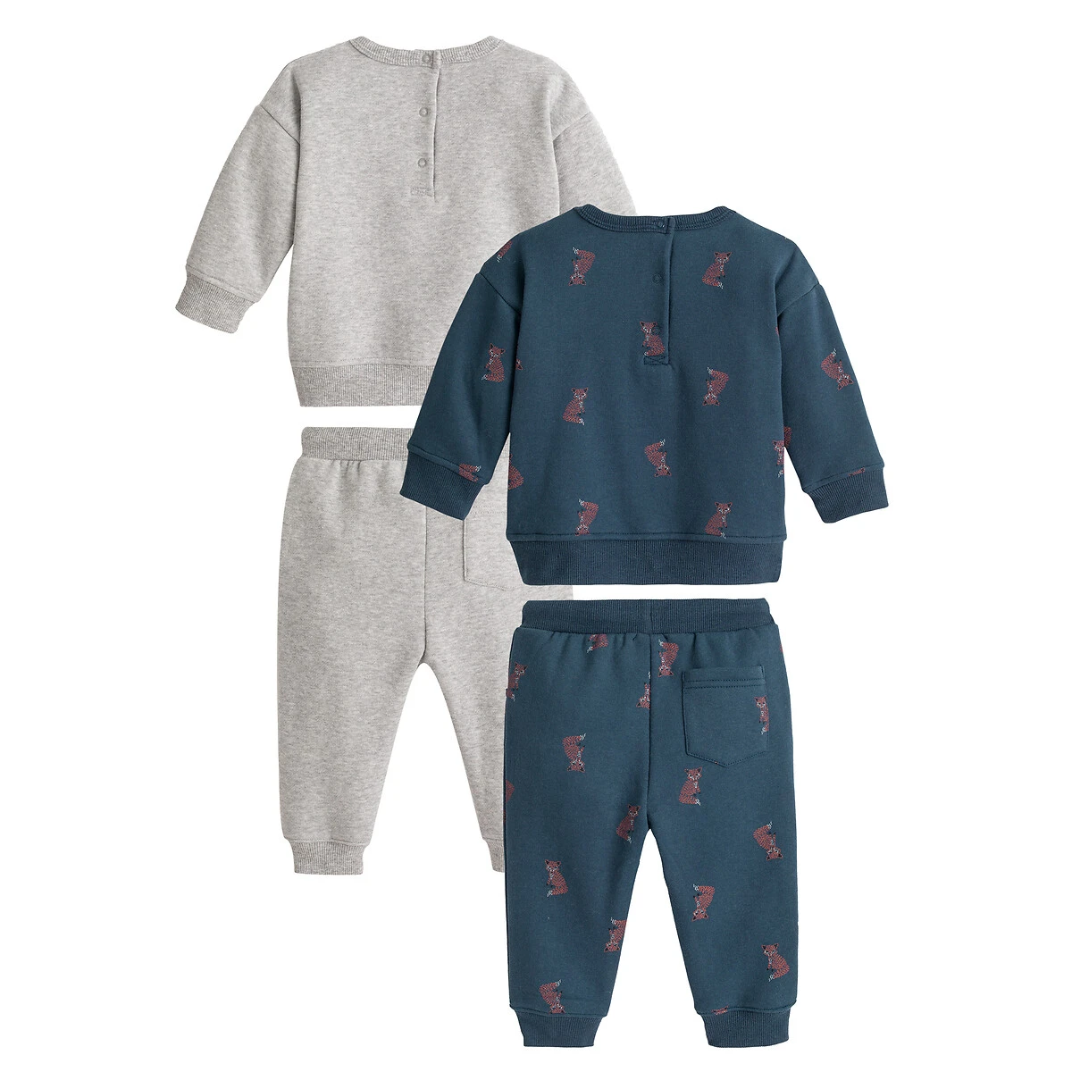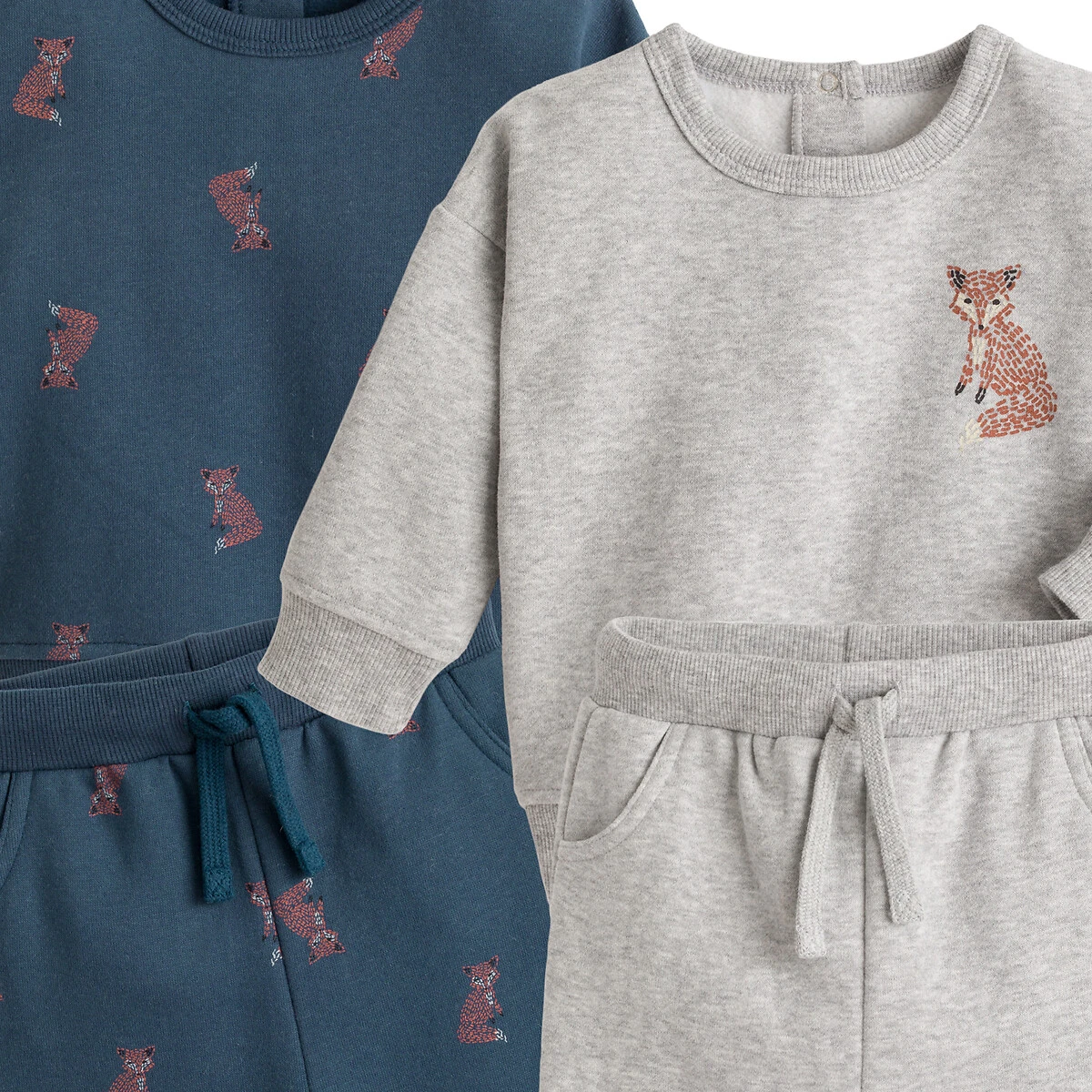 • Lot de 2 ensembles 2 pièces : 1 imprimé « renards » + 1 uni avec motif « renard » imprimé poitrine