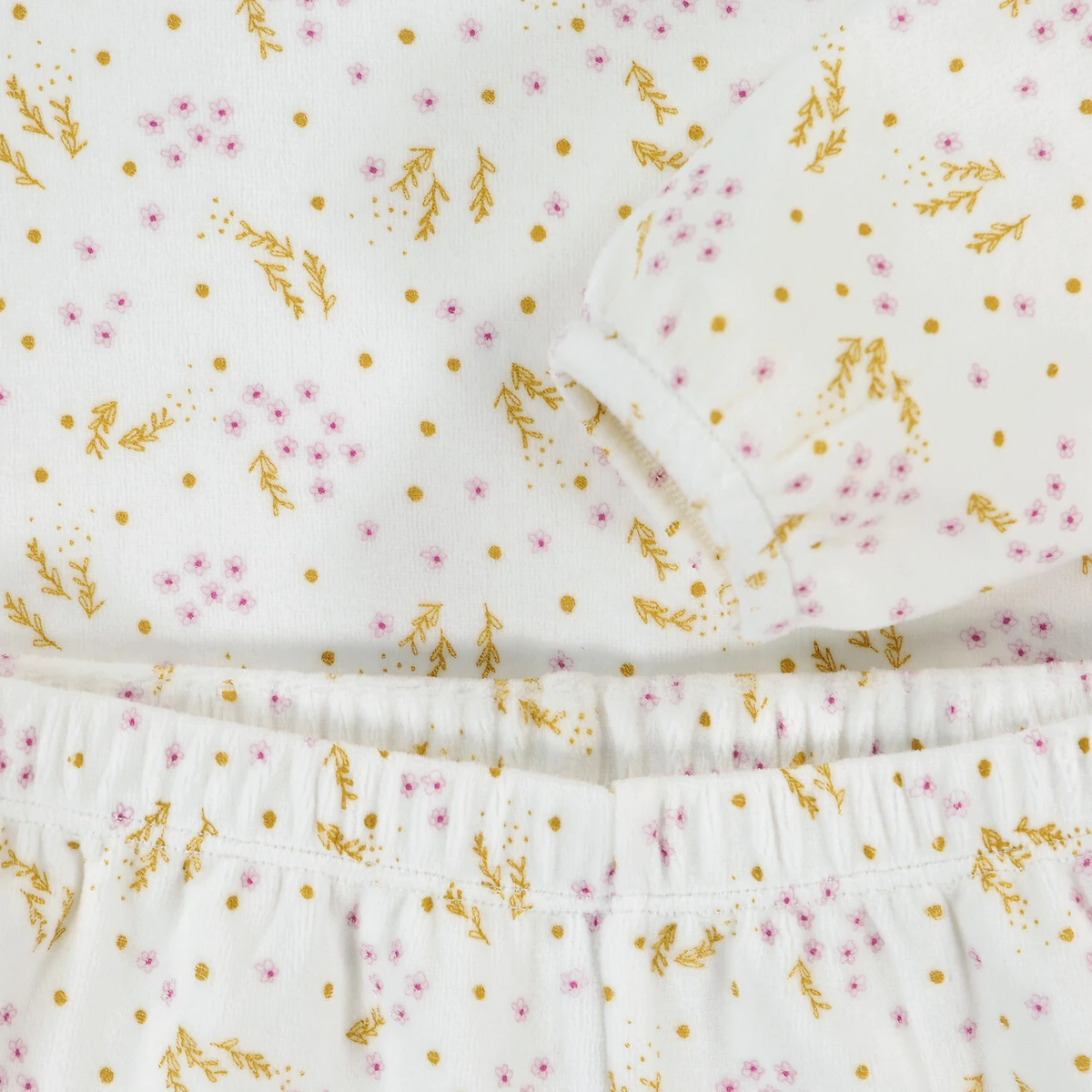 • Lot de 2 pyjamas : 1 imprimé fleurs + 1 uni avec motif « lapin » imprimé sur le haut