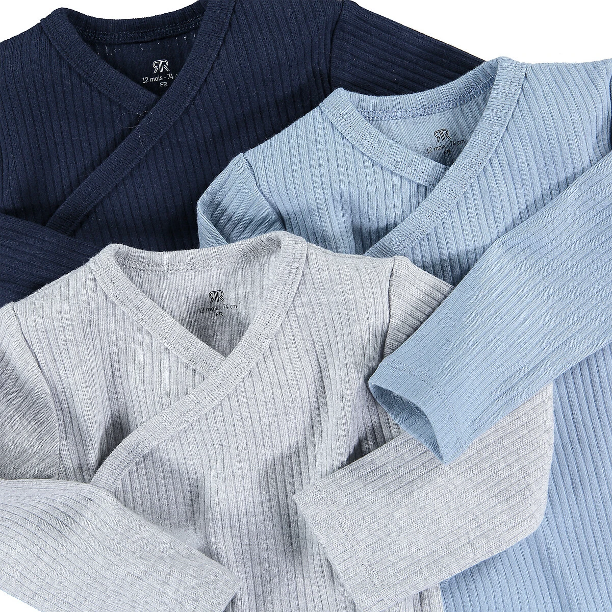 Lot de 3 bodies naissance en coton bio gris + bleu LA REDOUTE COLLECTIONS