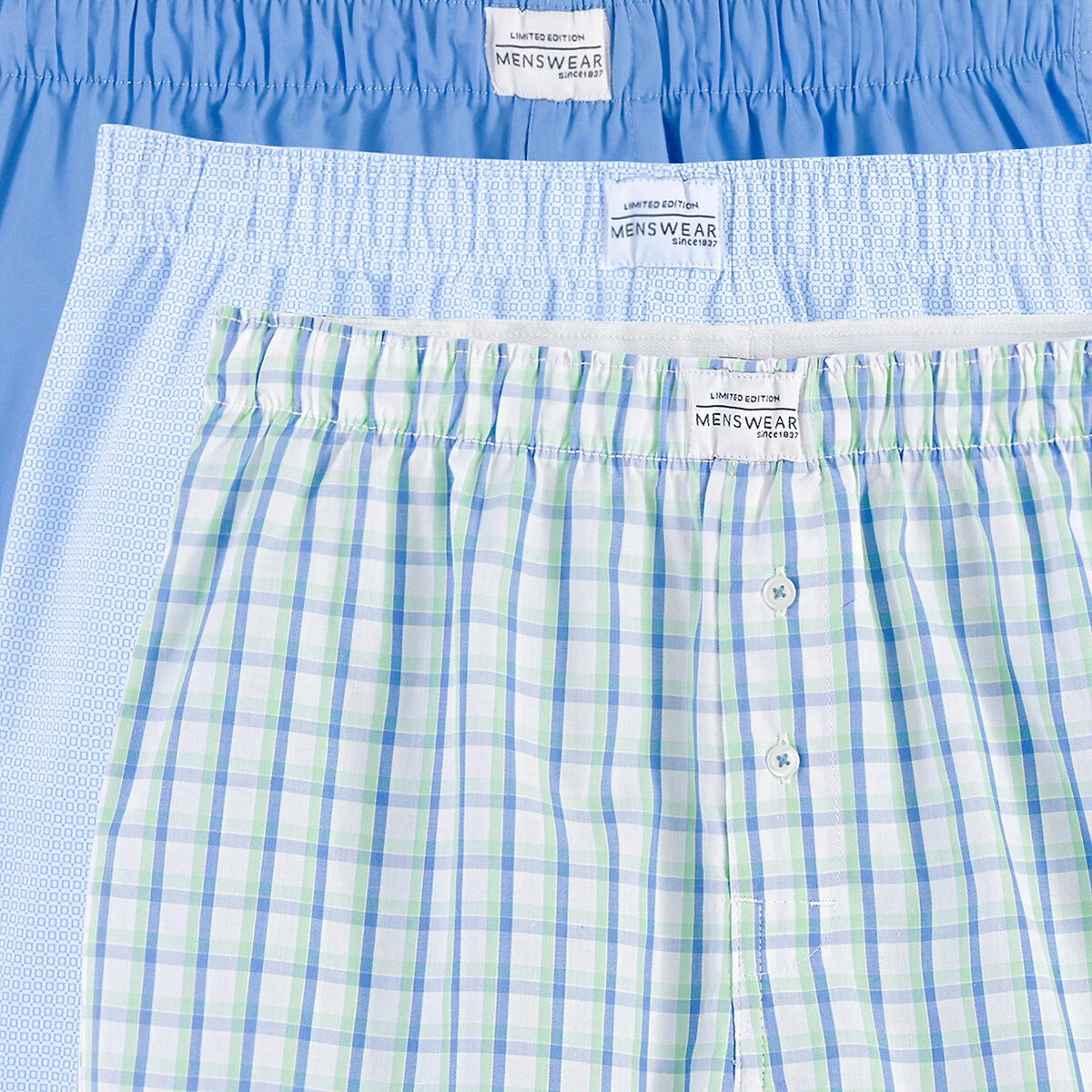 • Lot de 3 caleçons : 1 imprimé carreaux + 1 uni + 1 micro motifs