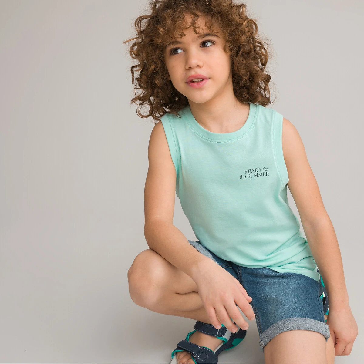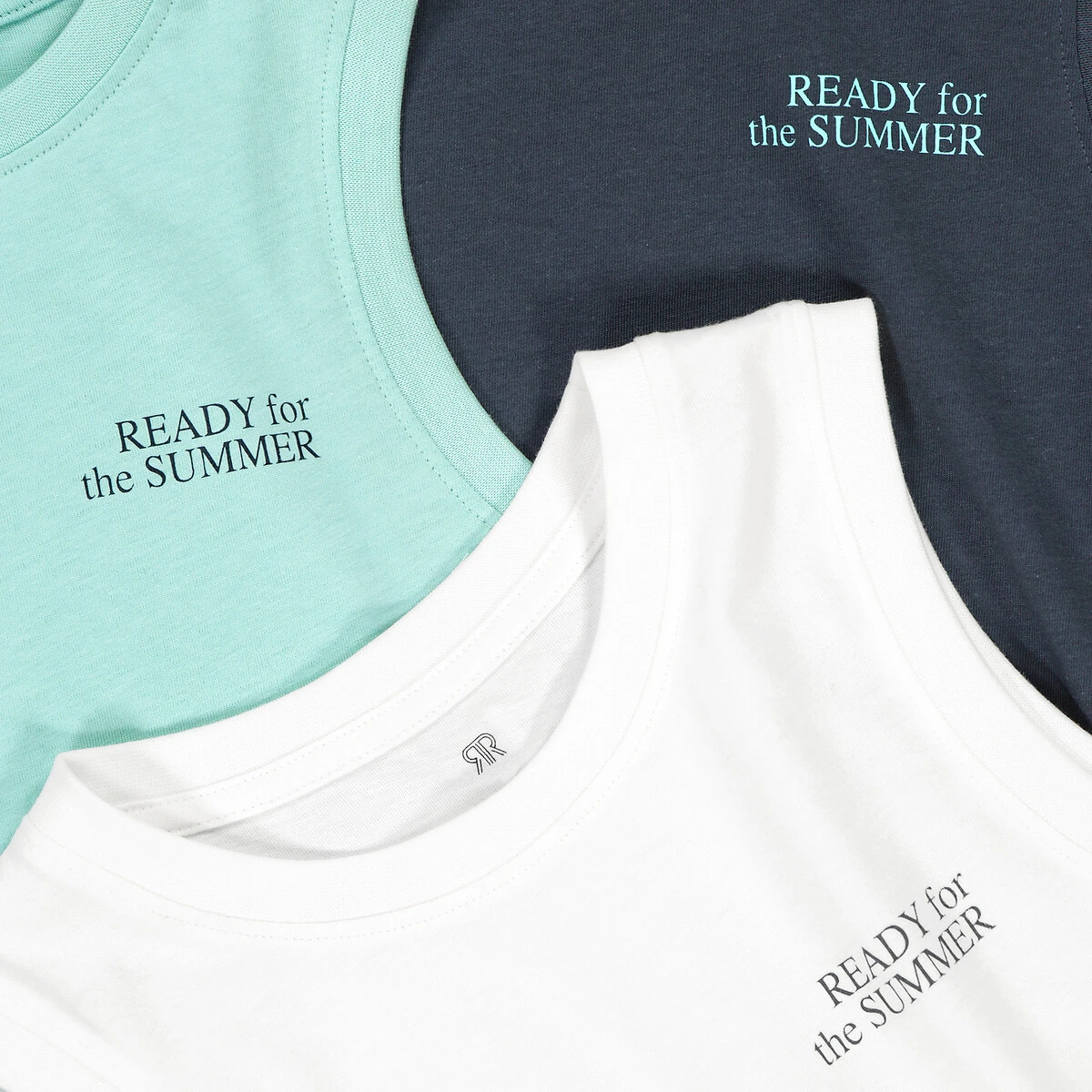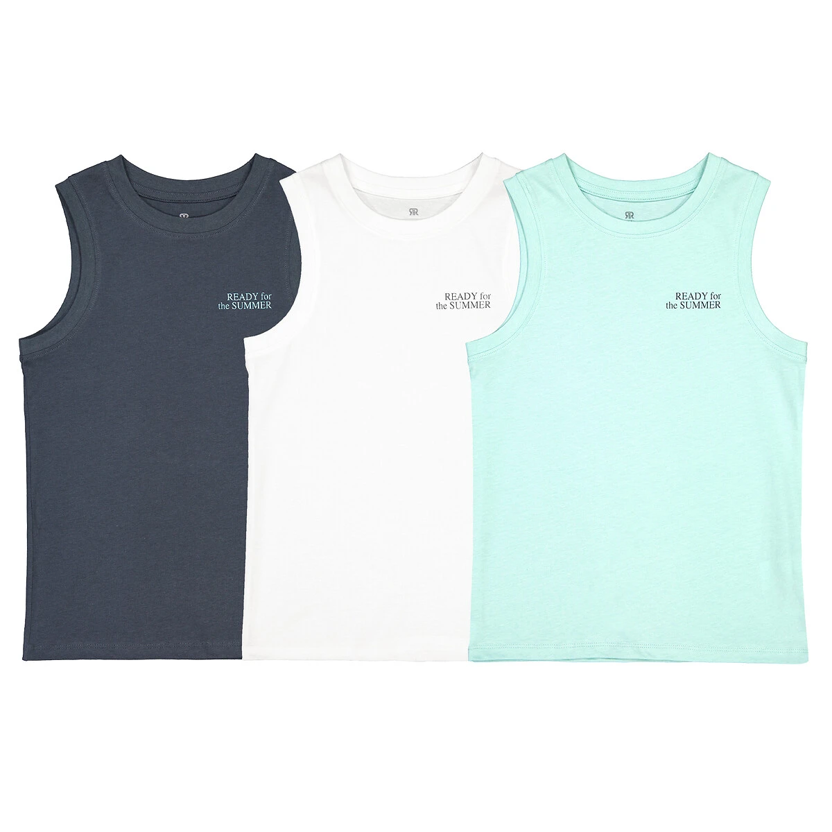 Lot de 3 débardeurs, message imprimé poitrine marine + bleu + blanc LA REDOUTE COLLECTIONS