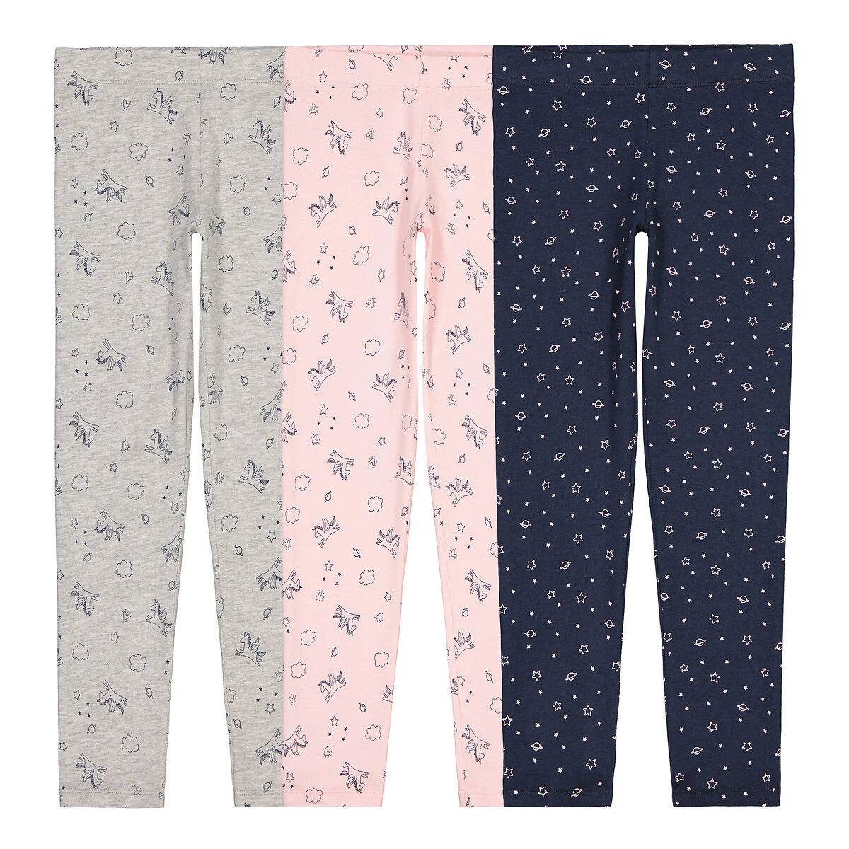 Lot de 3 leggings en coton stretch licornes rose + marine + gris LA REDOUTE COLLECTIONS