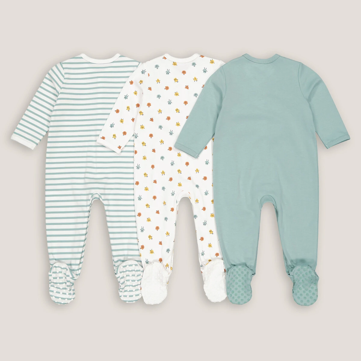 Lot de 3 pyjamas naissance en coto rayé + écru + bleu LA REDOUTE COLLECTIONS