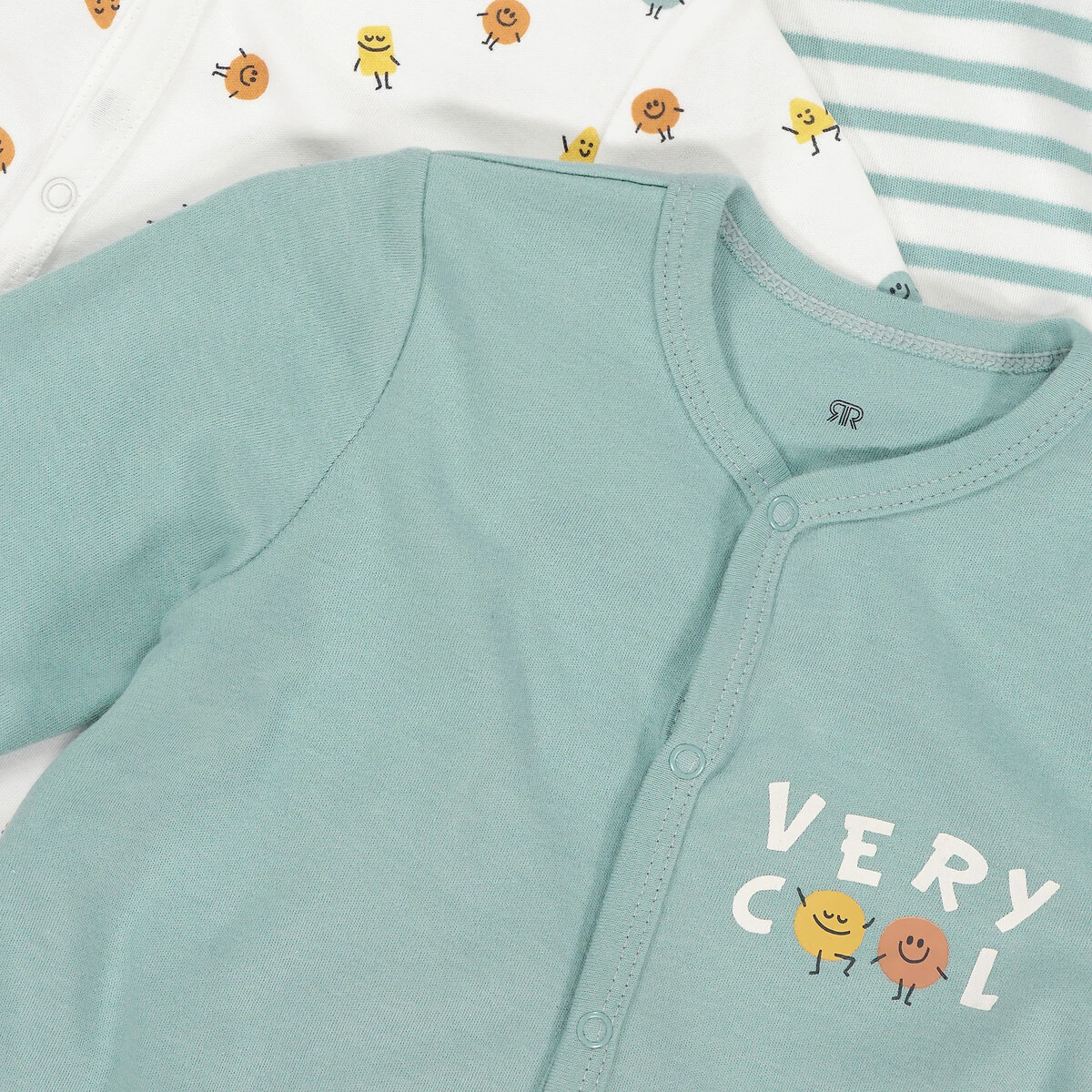• Lot de 3 pyjamas : 1 rayé + 1 imprimé « bonshommes » + 1 uni avec texte « Very cool » imprimé poitrine