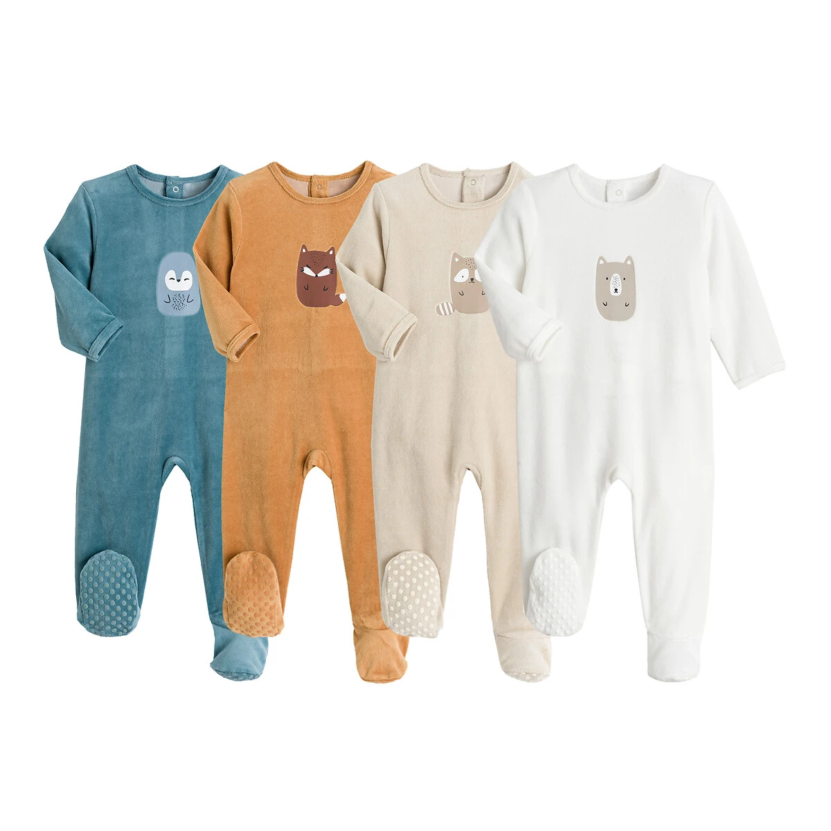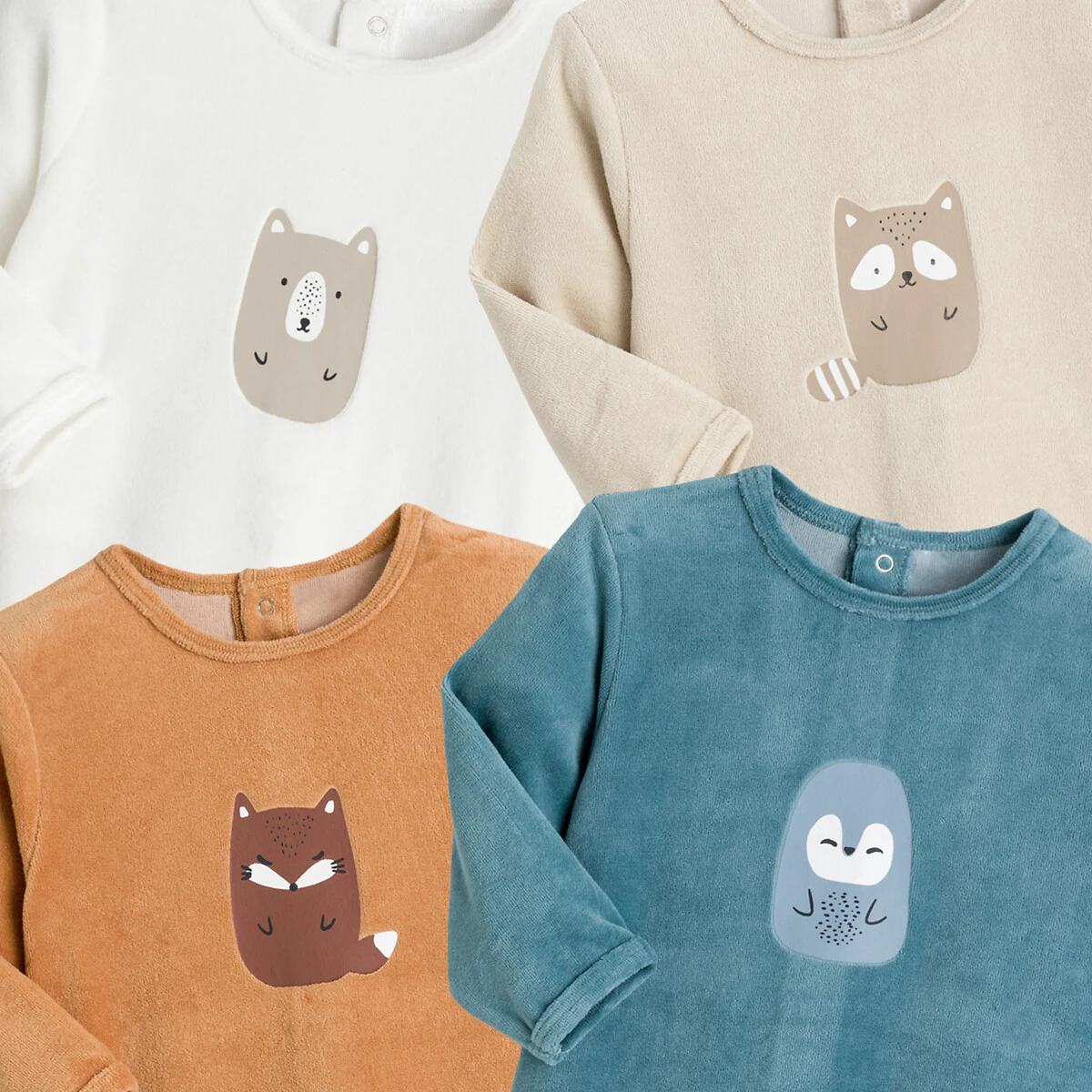 • Lot de 4 pyjamas 1 pièce avec motif animalier différent imprimé sur chacun d’eux