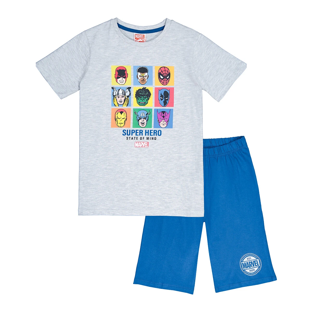 Pyjashort imprimé super héros gris chiné/bleu MARVEL