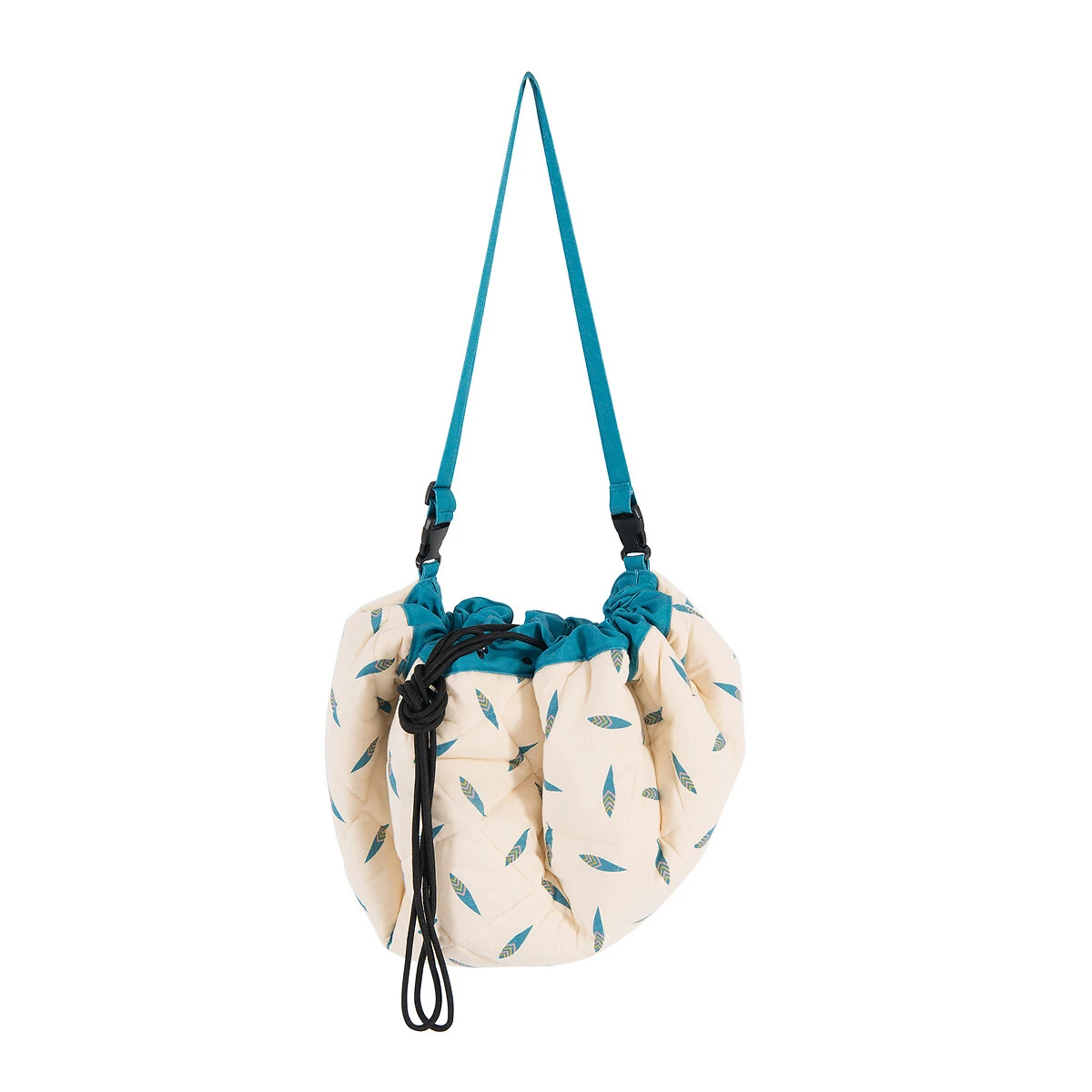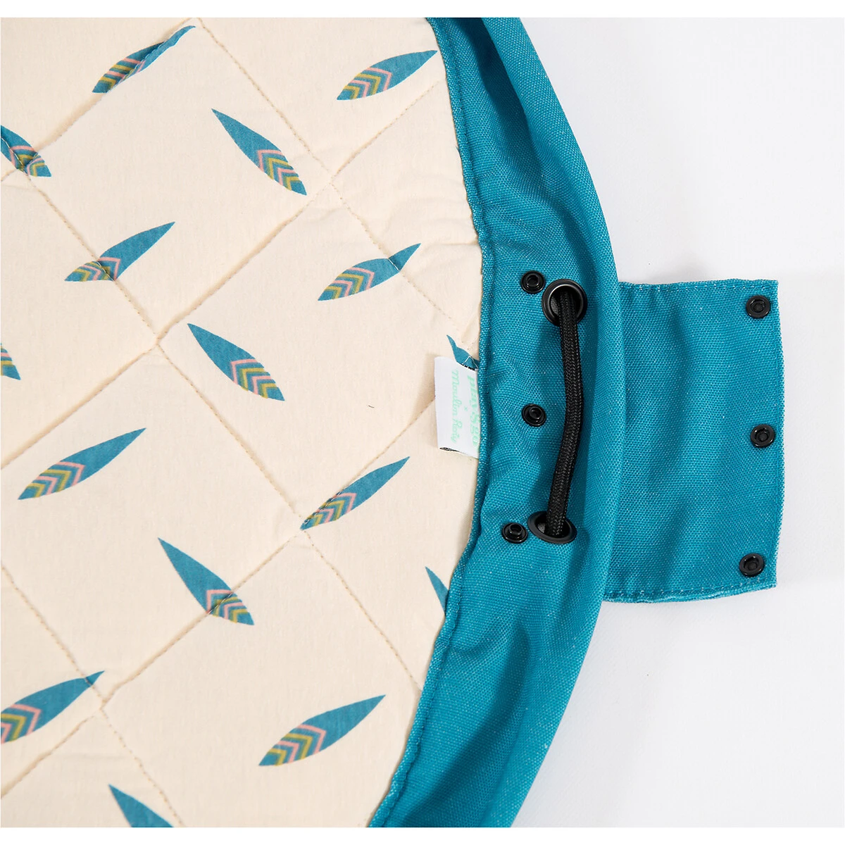 Pratique ! Ce tapis de jeu molletonné en toile 100% coton se transforme en sac de rangement à emmener partout avec soi.