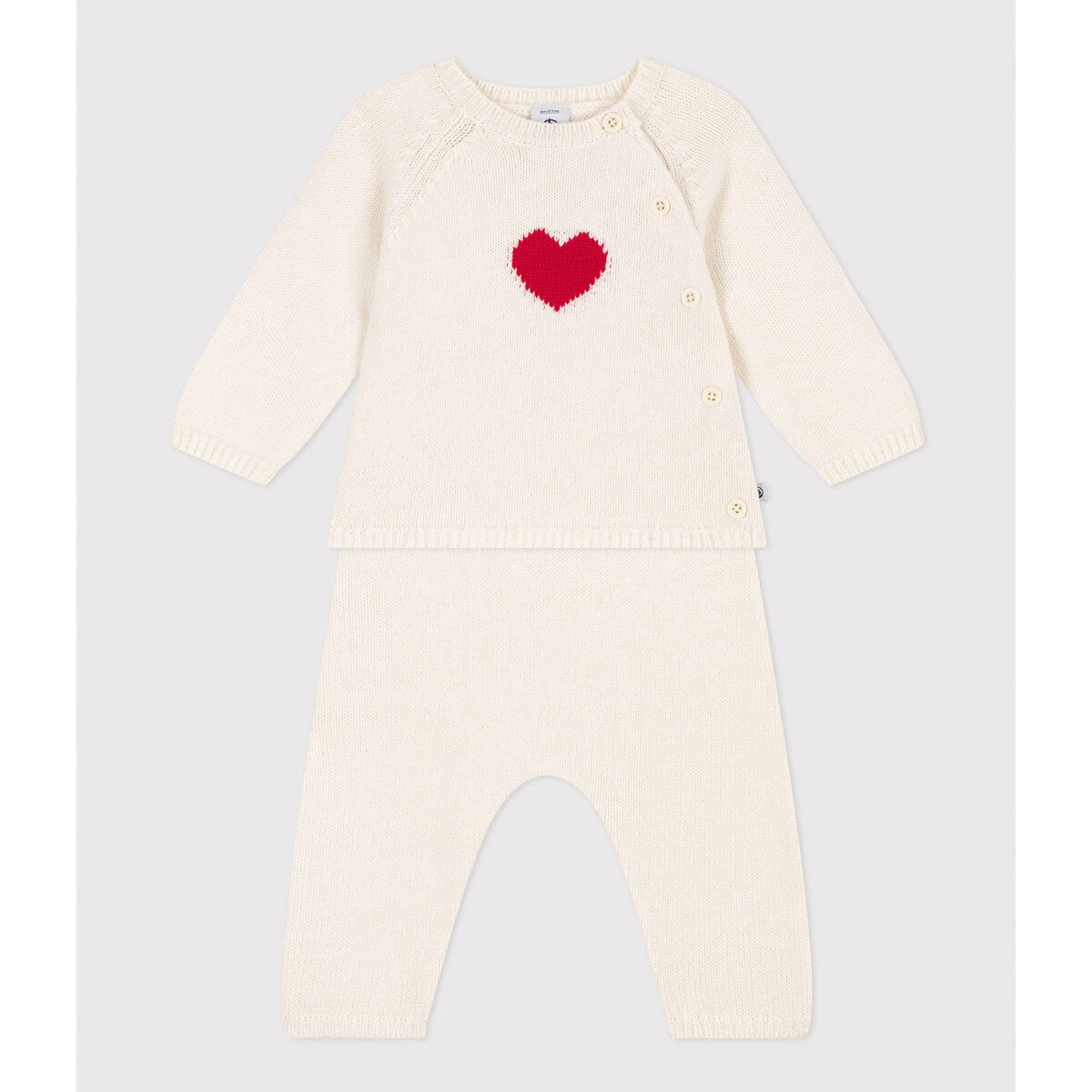 Ensemble en tricot laine et coton blanc PETIT BATEAU