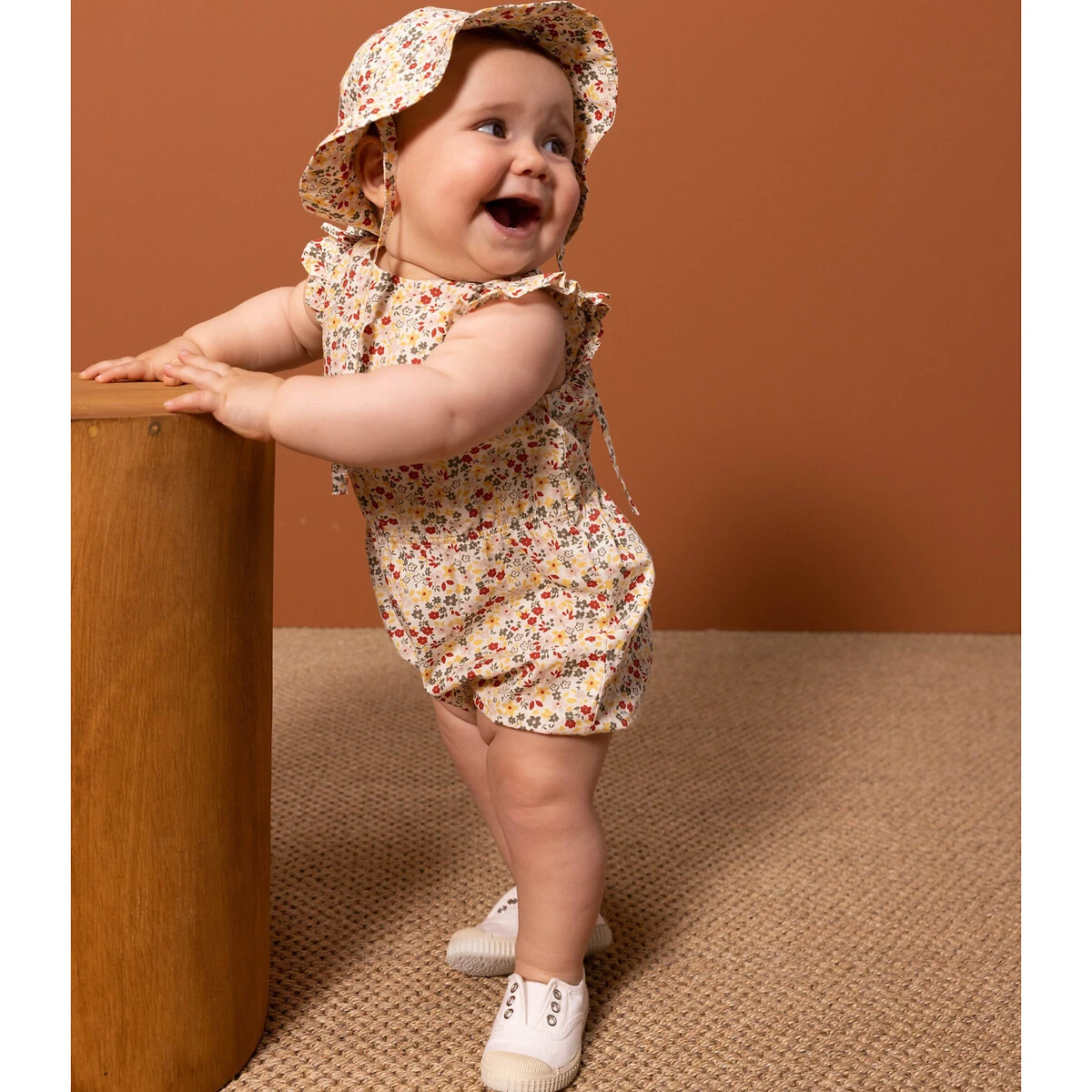 Salopette courte manches volantées imprimé fleuri PETIT BATEAU