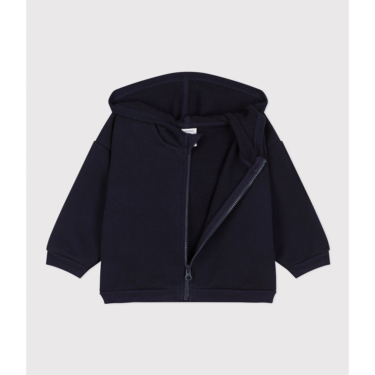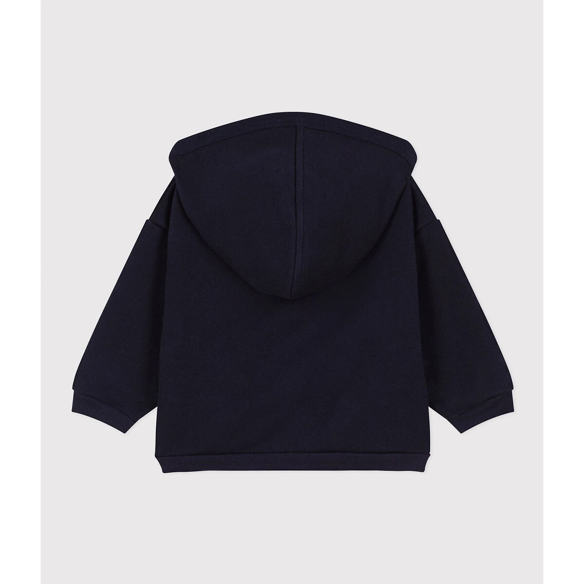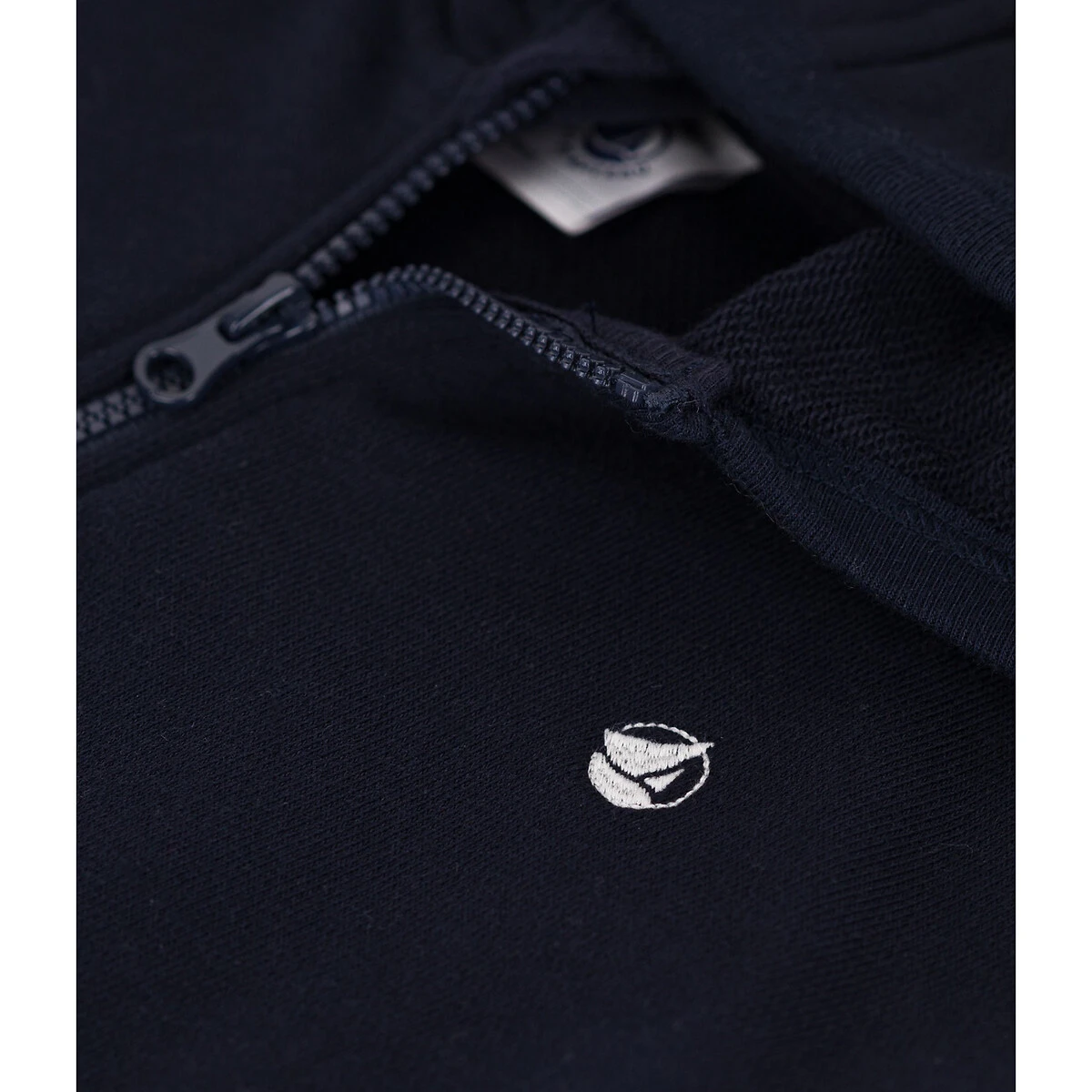 Sweat zippé molletonné à capuche bleu marine PETIT BATEAU