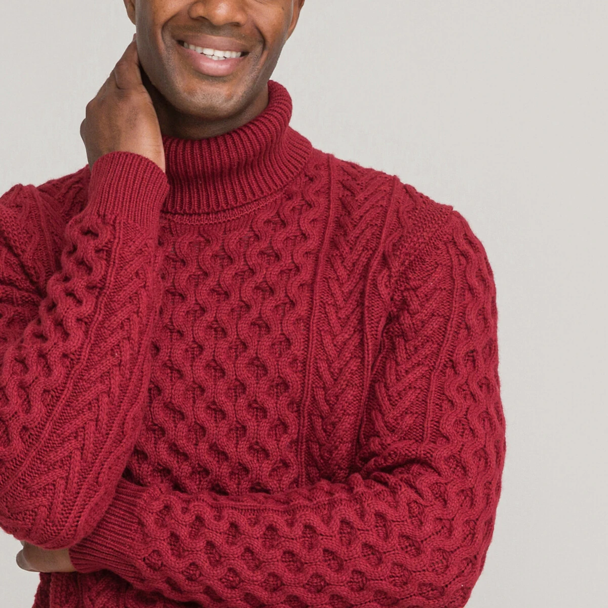 Pull col roulé maille torsadée rouge foncé LA REDOUTE COLLECTIONS