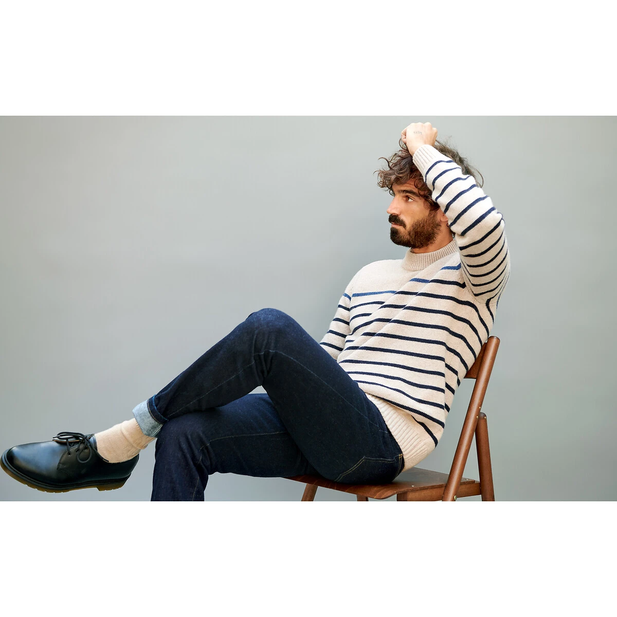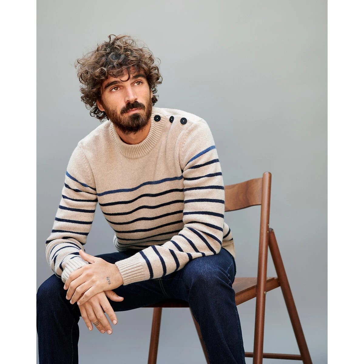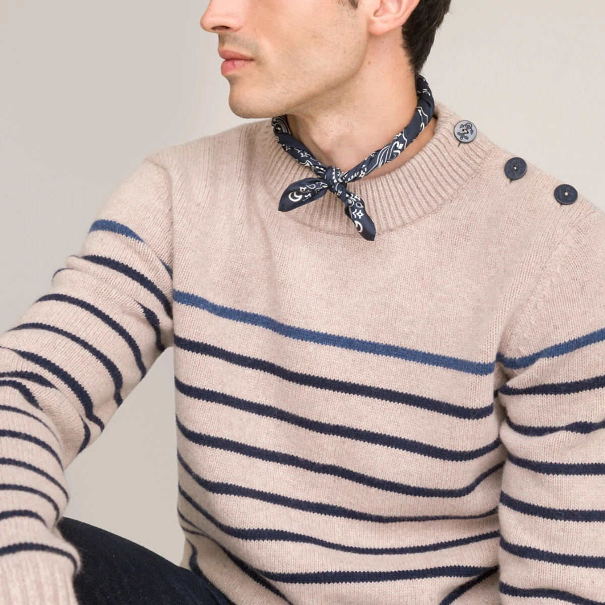 Pull marinière, fabriqué en France rayé écru/bleu LA REDOUTE COLLECTIONS
