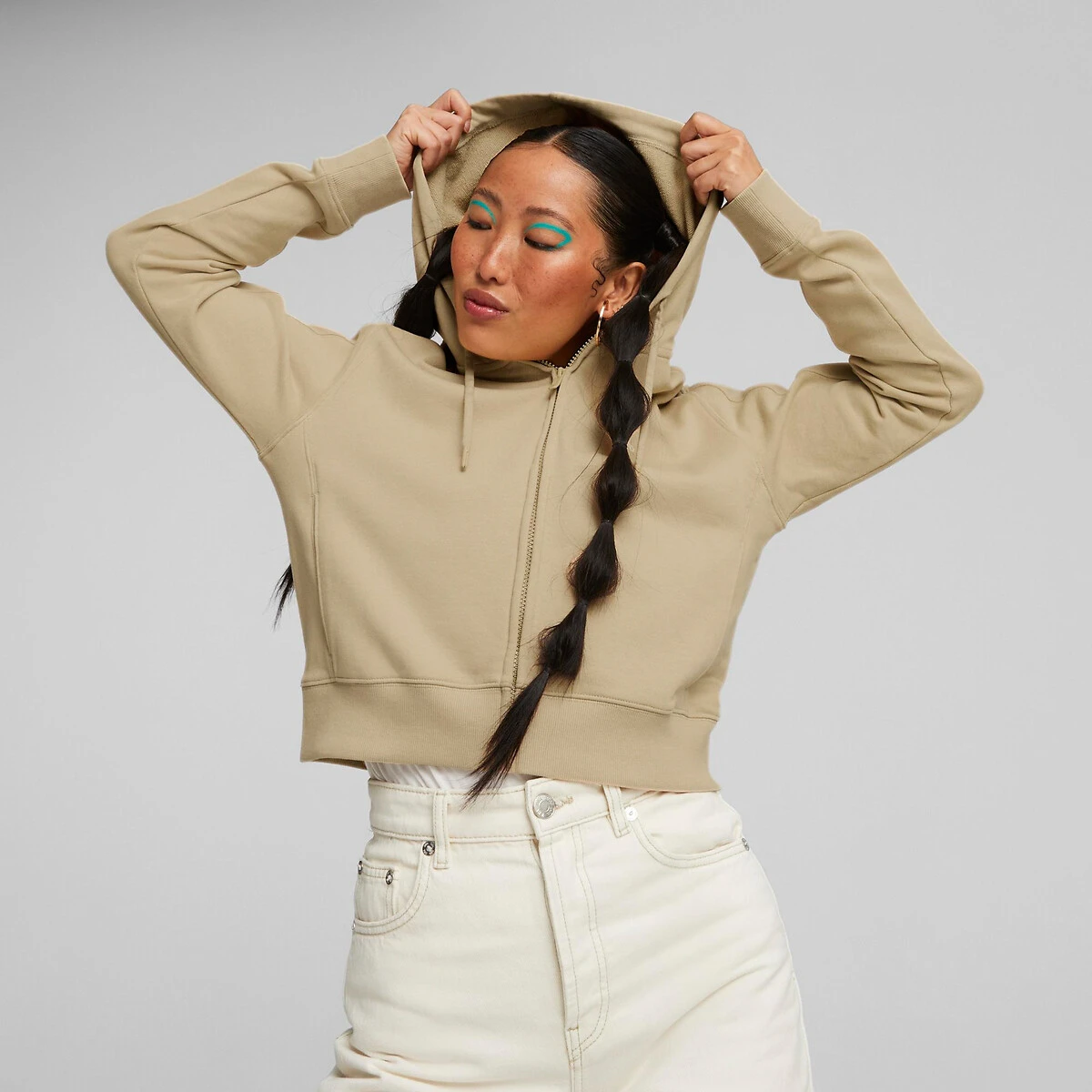 Sweat à capuche zippé Her Hoodie beige PUMA