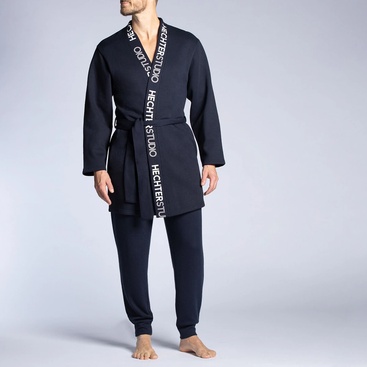 Robe de chambre en molleton gratté bleu marine DANIEL HECHTER LINGERIE