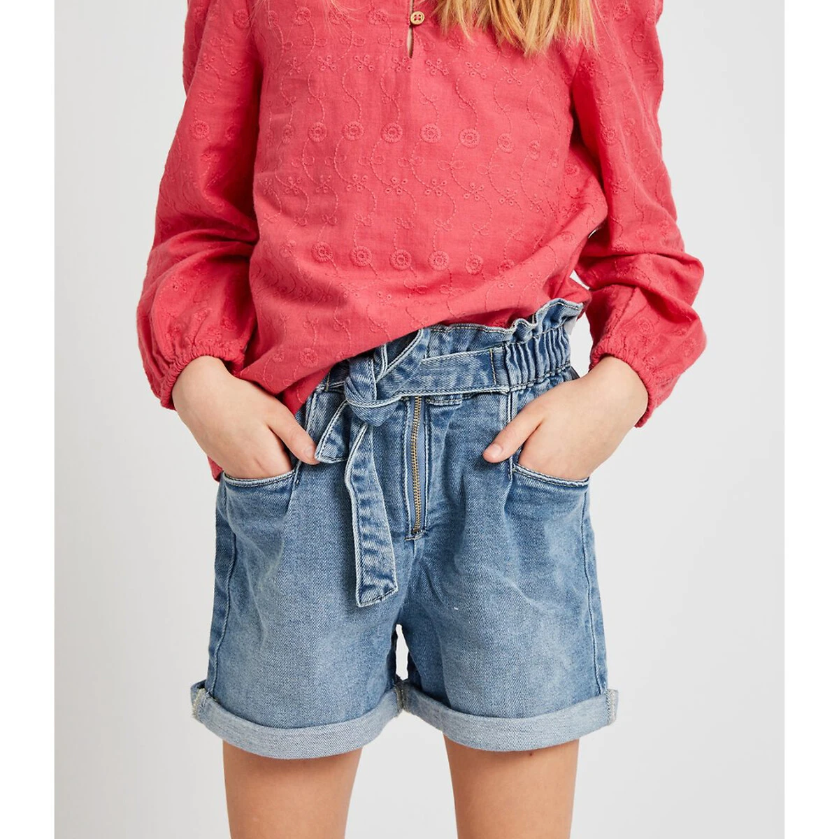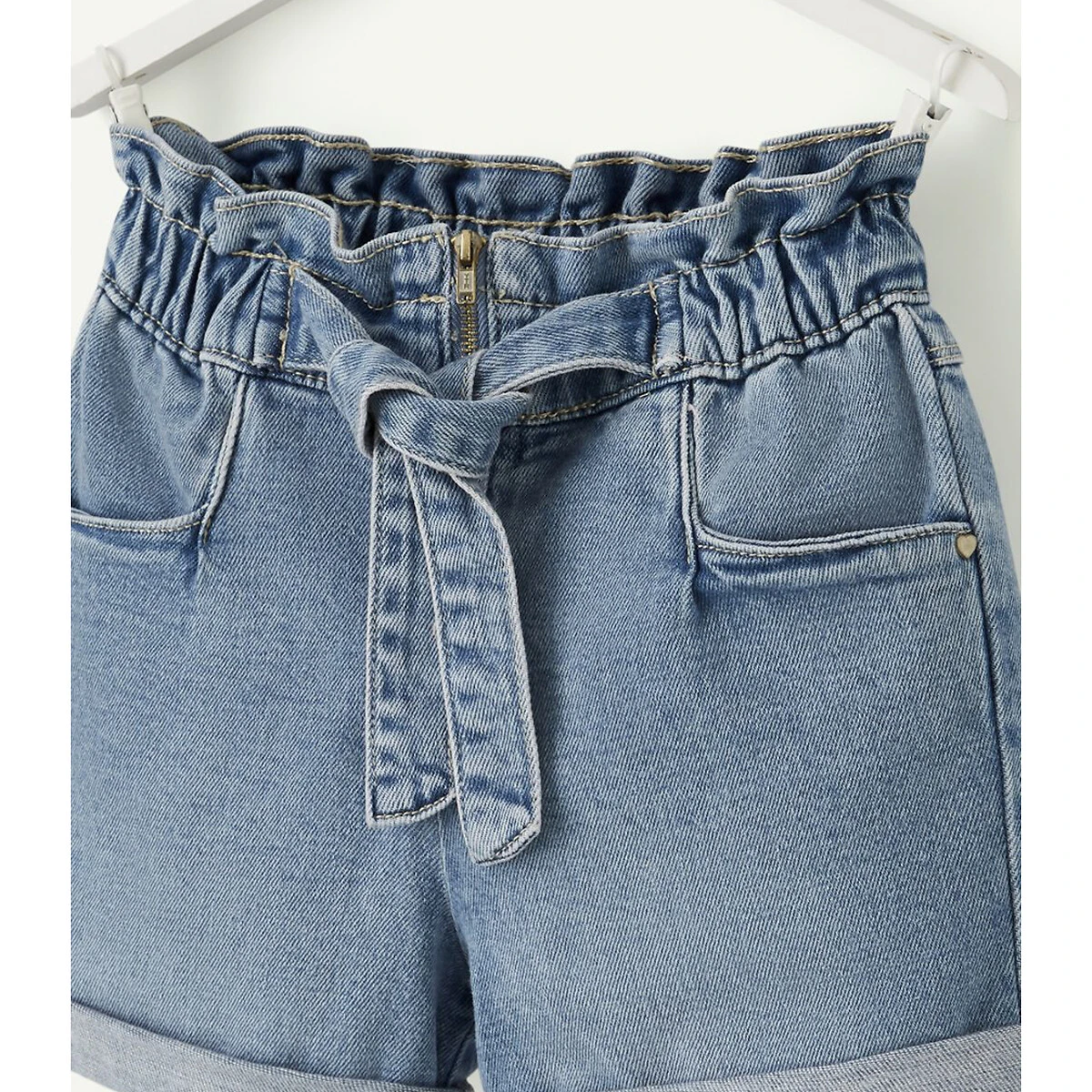 • Braguette zippée avec cordon de serrage en denim