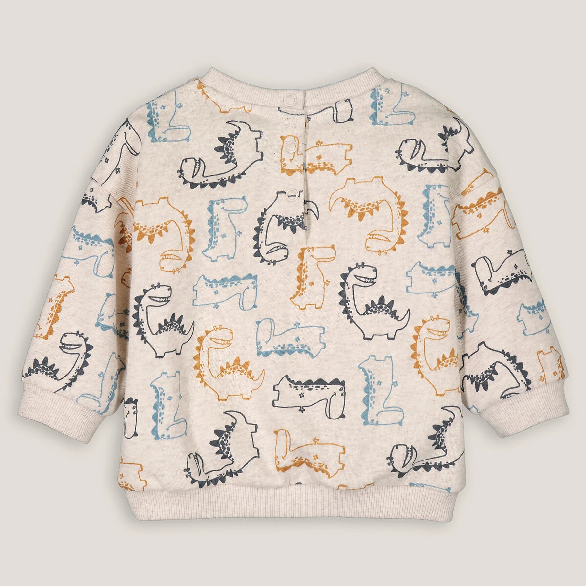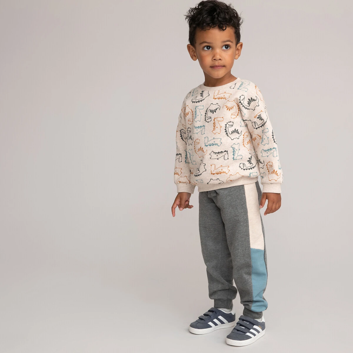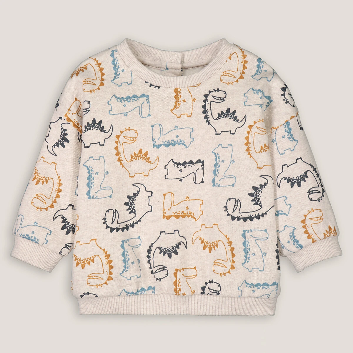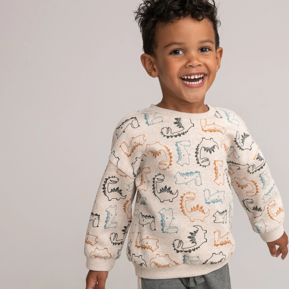 Sweat col rond en molleton, imprimé dinosaures beige chiné LA REDOUTE COLLECTIONS