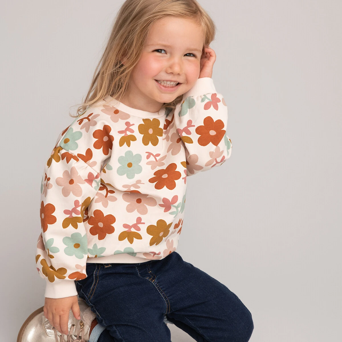 Sweat col rond en molleton, motif floral multicolore LA REDOUTE COLLECTIONS