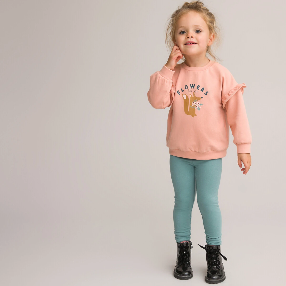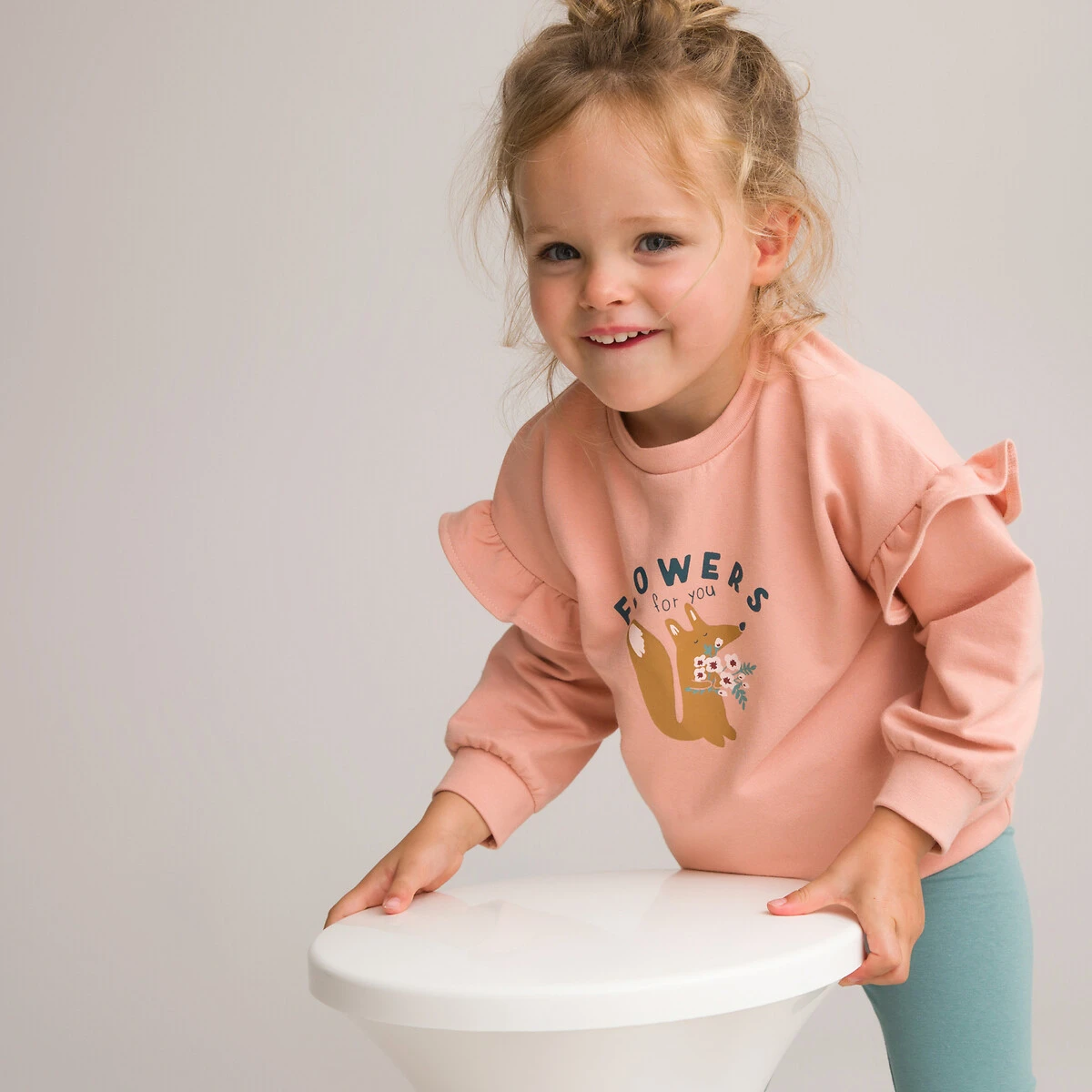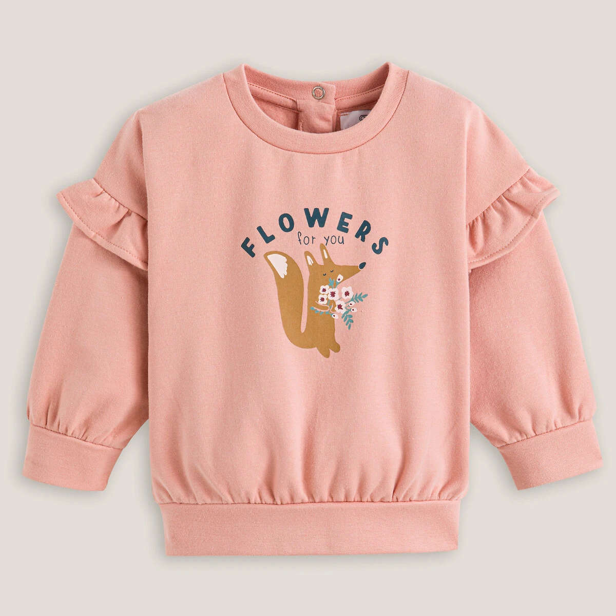 Sweat imprimé renard molleton, volants aux manches rose LA REDOUTE COLLECTIONS