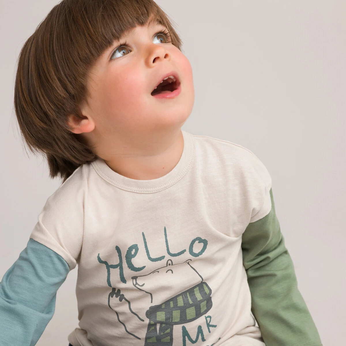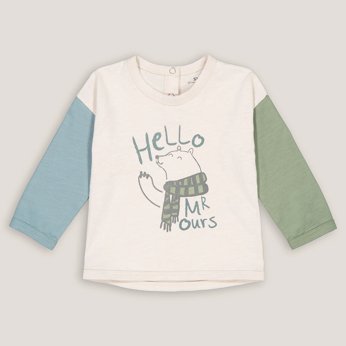 T-shirt manches longues color block, imprimé ours beige LA REDOUTE COLLECTIONS