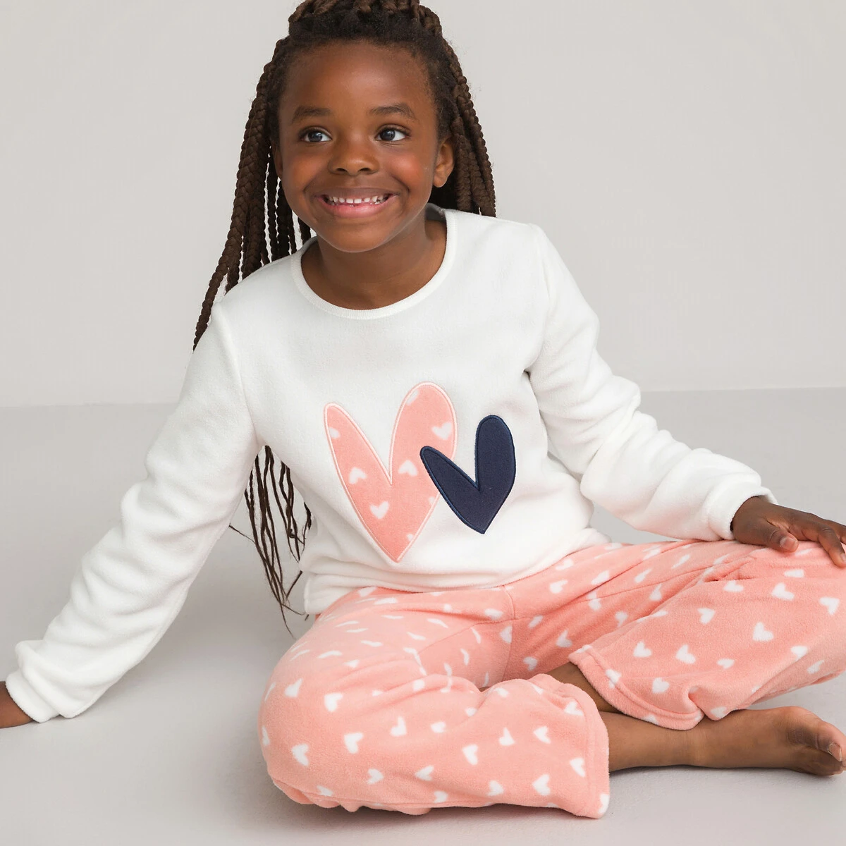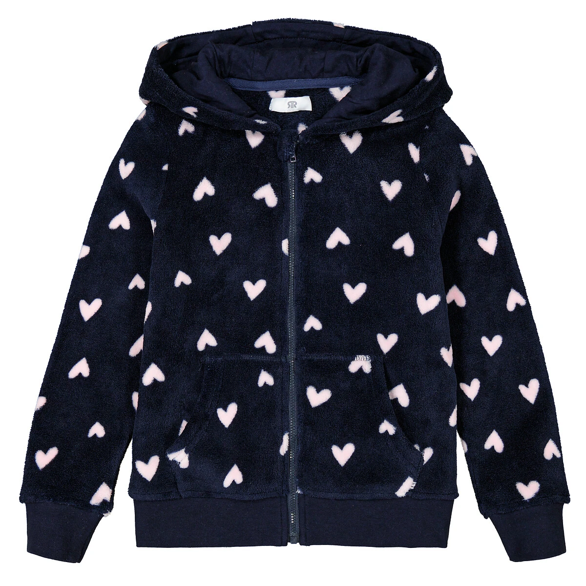 Veste d’intérieur à capuche, polaire, motif coeurs bleu marine LA REDOUTE COLLECTIONS